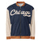 Celebrate iconic city pride with a retro twist in the Men’s “Chicago” Bomber Jacket. This varsity-inspired jacket features a bold “Chicago” script across the chest, bringing nostalgic energy to a sleek and sporty silhouette. The navy blue body contrasts beautifully with soft cream sleeves and rich tan accents on the collar, hem, and cuffs—giving it an effortlessly timeless aesthetic.