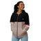 Stay cozy and stylish with the Women’s Colorblock Zip-Up Hoodie, designed for a modern and sporty look. Featuring a sleek black and beige colorblock pattern with red and white stripe accents, this hoodie is the perfect blend of casual fashion and everyday comfort. Made from a high-quality cotton-polyester blend, it provides breathability, warmth, and durability. With a full-zip front closure, adjustable drawstring hood, and kangaroo pockets, this hoodie is both functional and fashionable—ideal for layering, casual wear, and streetwear styling.