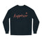 Spread joy with the Women's ""Happiness"" Minimalist Sweatshirt, a perfect combination of simplicity and inspiration. Featuring a clean and elegant ""happiness"" script design in vibrant coral pink against a deep navy blue background, this sweatshirt makes a bold yet understated style statement. Its minimalist appeal ensures it complements a variety of outfits, making it a versatile wardrobe staple.