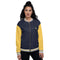 Embrace the timeless varsity aesthetic with this Women's Navy & Yellow Varsity Bomber Jacket – the perfect combination of sporty, casual, and stylish. Designed with a classic two-tone color scheme, this bomber jacket features a deep navy blue body with bold yellow sleeves, giving it a vibrant and athletic vibe.