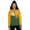 Channel your inner witchy vibes with the Women's ""Witchy Mama"" Mustard Bomber Jacket, a stylish, comfortable, and empowering fashion piece for modern moms who love a touch of magic. Designed in a rich mustard yellow with contrasting green ribbed cuffs, hem, and collar, this bomber jacket makes a bold statement while keeping you cozy.