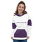 Stay cozy and stylish with the Women’s Progressive18 Colorblock Hoodie, a perfect fusion of comfort and contemporary fashion. Featuring a sleek white and purple colorblock design with the ""Progressive18"" branding on the chest, this hoodie is designed for those who love minimalist yet trendy aesthetics. Made from a high-quality cotton-polyester blend, it ensures breathability, warmth, and long-lasting durability. The adjustable drawstring hood, spacious kangaroo pocket, and ribbed cuffs make this hoodie functional and versatile, ideal for casual wear, lounging, and layering.